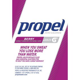 Amazon.com: Propel Powder Packets, 3 Flavor Variety Pack, Electrolytes ... Includes 50 Propel Powder Packets: (20) Watermelon, (20) Black Cherry, and (10) Grape How Gatorade does water, with Gatorade electrolytes to put back what you lose in sweat Propel provides electrolytes and is an excellent source of vitamin B and antioxidant vitamins C and E
