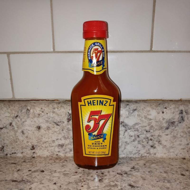 Heinz 57 Sauce, 20 oz Bottle - Walmart.com One 20 oz bottle of Heinz 57 Sauce; Heinz 57 Sauce uses a secret blend of spices to make it a favorite for over 100 years; Zesty multi use sauce uses delicious ingredients; Thick ready-to-use sauce is versatile enough for grilling, marinating and dipping; Made with tomato puree, vinegar and a secret blend of spices with 20 calories per serving
