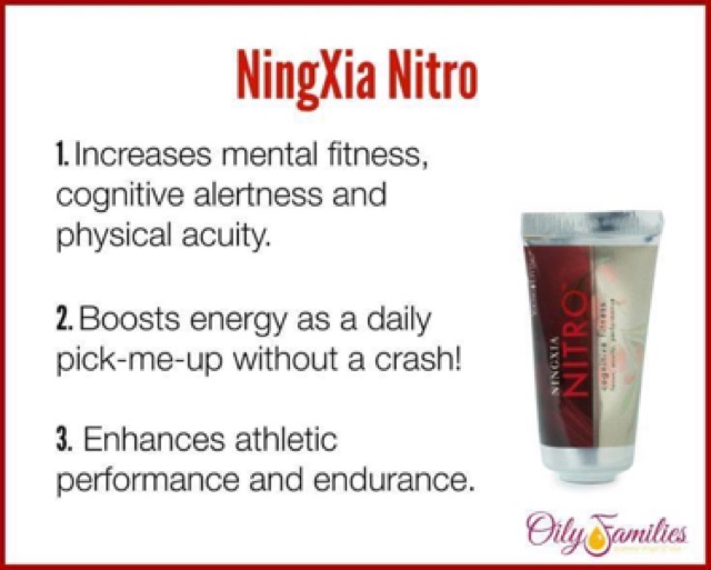PDF Essential Oil Therapies The New NingXia Nitro Combines 100% pure, therapeutic-grade essential oils with naturally powerful ingredients to improve your mental focus and clarity, support a healthy mood and provide sustained energy. Can help improve athletic performance. NEW NingXia Red A powerful antioxidant drink that contains the NingXia wolfberry,