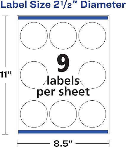 Avery Printable Blank Round Labels, 2.5" Diameter, Matte White, 225 ... Buy Avery Printable Blank Round Labels, 2.5" Diameter, Matte White, 225 Customizable Labels (22562): Everything Else - Amazon.com FREE DELIVERY possible on eligible purchases