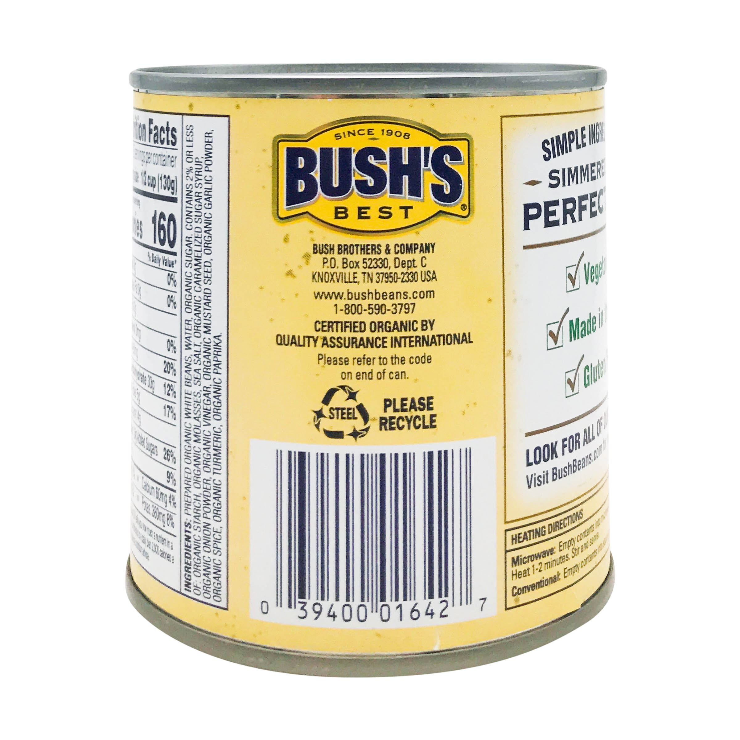 Bush's Baked Beans Nutrition | livestrong Most of the carbs in these products come from the beans themselves. A 1/2 cup of plain navy beans contains 24 g of carbs, while an equal serving of Bush's Baked Beans contains 24 to 33 g of carbs. Beans are also a good source of protein. Just one serving of Bush's Baked Beans contains 6 g of protein.