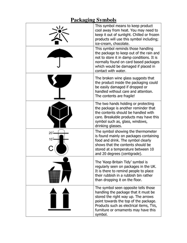 The Complete Guide to International Packing Symbols - PackMojo This symbol, consisting of two arrows pointing towards the top, directs in which way the box is to be placed to ensure it is upright. If the packaging holds this symbol, it means that the contents must never be carried sideways or upside-down as they might break. It's also a good indication of which side to open the box from. Fragile