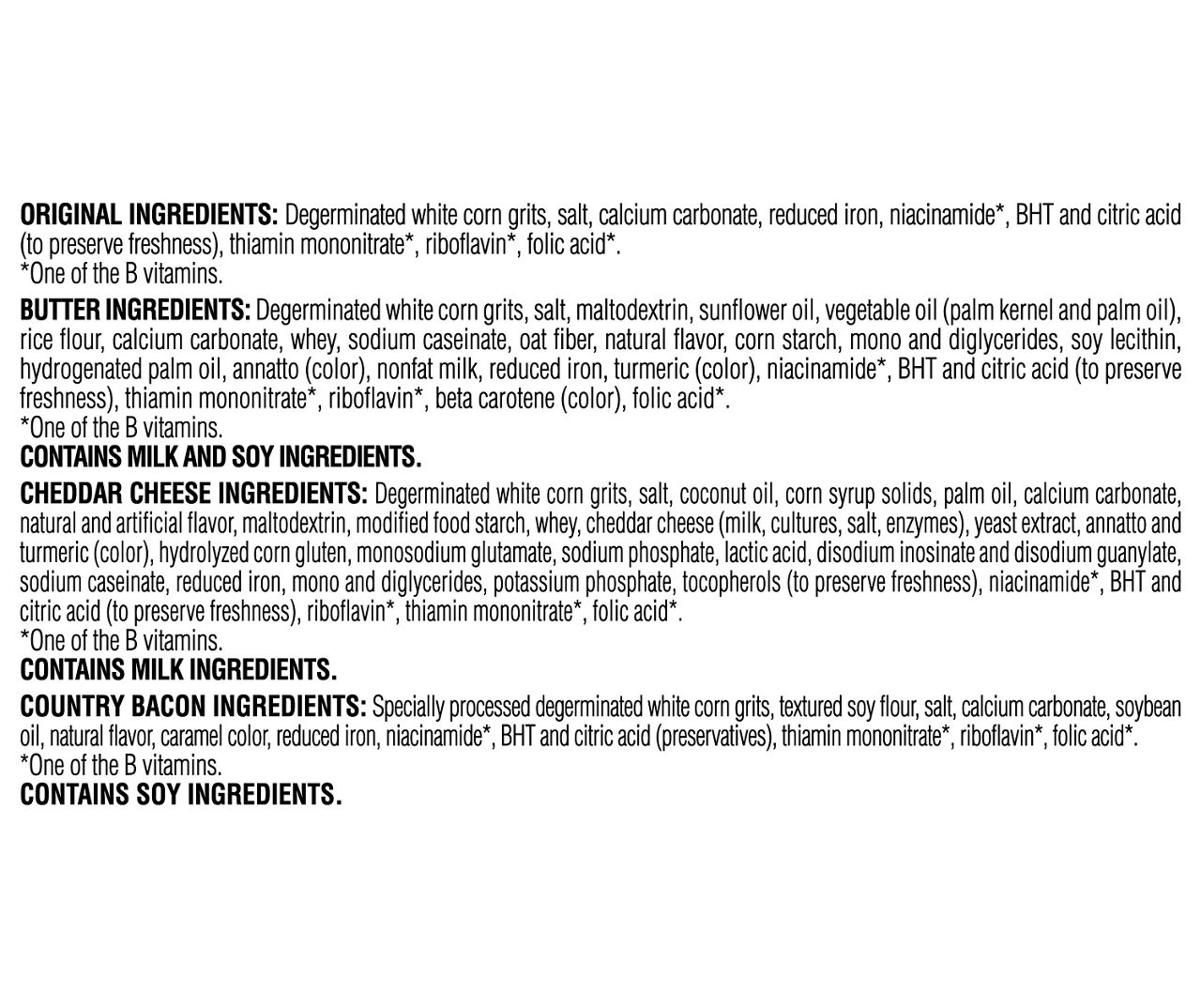 Quaker Butter Flavor Instant Grits - Shop Cereal & Breakfast at H-E-B Nutrition Facts Butter Flavor Instant Grits About 12 Serving Per Container % Daily Value* *Percentage Daily values are based on a 2,000 calorie diet.Your Daily values may be higher or lower depending on your calorie needs we recommend Quaker Original Instant Grits, 12 oz $3.21 each ($0.27/oz) Quaker Flavor Instant Grits Variety Pack, 12 oz