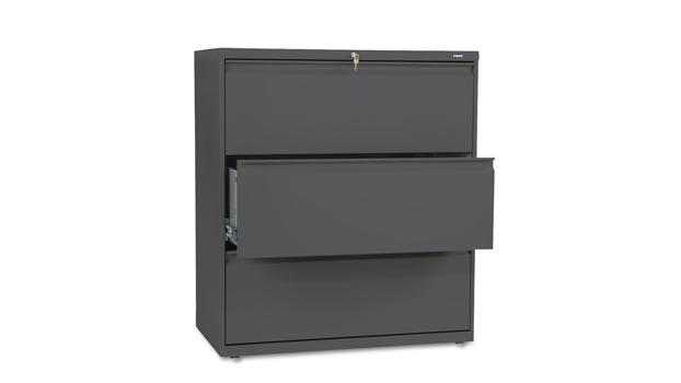 Lorell 3-Drawer Black Lateral Files - 42" x 18.6" x 40.3" - 3 x Drawer(s) for File - Letter, Legal, A4 - Lateral - Locking Drawer, Magnetic Label ...