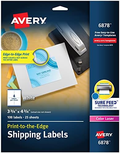 Avery® TrueBlock® Shipping Labels, Sure Feed™ Technology, Permanent Adhesive, 3-1/3" x 4", 600 Labels (8464)