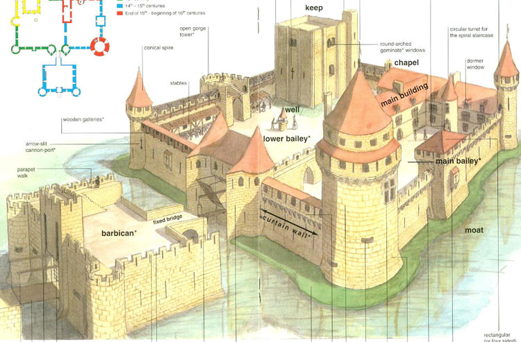 Diagram of a castle. Awakening: The Skyward Castle Walkthrough - Big Fish Games Sep 28, 2012 · Use the diagram to mix the herbs (M). Place the herbs in the pan, then press in the pan to mix. There are three correct combinations shown here (N, O, P). You will earn the HEALING POULTICES. Use the map to travel to the castle landing. Use the HEALING POULTICES on the unicorn for a mini-game. Use the red poultice on the red injuries (Q). Saltwood Castle - Wikipedia Saltwood Castle is a castle in Saltwood village, one mile (2 km) north of Hythe, Kent, England.Of 11th century origin, the castle was expanded in the 13th and 14th centuries. After the Norman Conquest, the castle was appropriated by the Archbishop of Canterbury Lanfranc and remained the property of the archbishops, with some interruptions, until 1540, when Thomas Cranmer … The Castle Dungeon and the Oubliette: The Truth About These ... A diagram of a castle oubliette. This was wider than many – a bell-jar prison, if you like. They would have been lowered into this shaft by a guardsman, and, once they reached the bottom, the rope would have been taken up and the trap-door above them would have been closed. Edinburgh Castle - Wikipedia Edinburgh Castle is a historic castle in Edinburgh, Scotland.It stands on Castle Rock, which has been occupied by humans since at least the Iron Age, although the nature of the early settlement is unclear.There has been a royal castle on the rock since at least the reign of David I in the 12th century, and the site continued to be a royal residence until 1633.