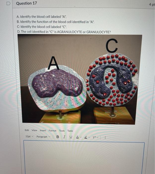 Blood cell labled. White Blood Cells Scan | Imaging Institute - Cleveland Clinic A labeled WBC scan is used for detection of abscesses and infection in soft tissues, skeleton, or fever of unknown origin. Cleveland Clinic is a non-profit academic medical center. Advertising on our site helps support our mission. We do not endorse non-Cleveland Clinic products or services. Policy How should I prepare for a labeled WBC scan? Indium-111 oxine labeled white blood cell scan - Radiopaedia Apr 3, 2020 · The patient's blood is withdrawn and white blood cells extracted. These are then labeled with indium-111 oxine and injected back into the patient. It is, obviously, imperative that the patient receives his or her own white blood cells back and careful systems must be in place to ensure that this occurs. The patient is then imaged 24 hours later giving the white blood cells the opportunity to migrate to the site of inflammation/infection. Blood Labelling Flashcards | Quizlet Red Blood Cells. 7. Type A. 1. Type B. 2. Type AB. 3. Type O. 4. Platelet Aggreegation. The cell labeled D. Which of the labels in the figure indicate a cell normally found in the circulating blood?-Releases cytotoxic enzymes-Reduces inflammation. Engulfs pathogens. Vascular Phase. 1. Blood Cells- Definition and Types with Structure and Functions Mar 29, 2022 · Blood contains three different types of blood cells, namely, red blood cell (erythrocytes), white blood cell (leukocytes), and platelets. In turn, there are three types of white blood cells—lymphocytes, monocytes, and granulocytes—and three main types of granulocytes (neutrophils, eosinophils, and basophils).