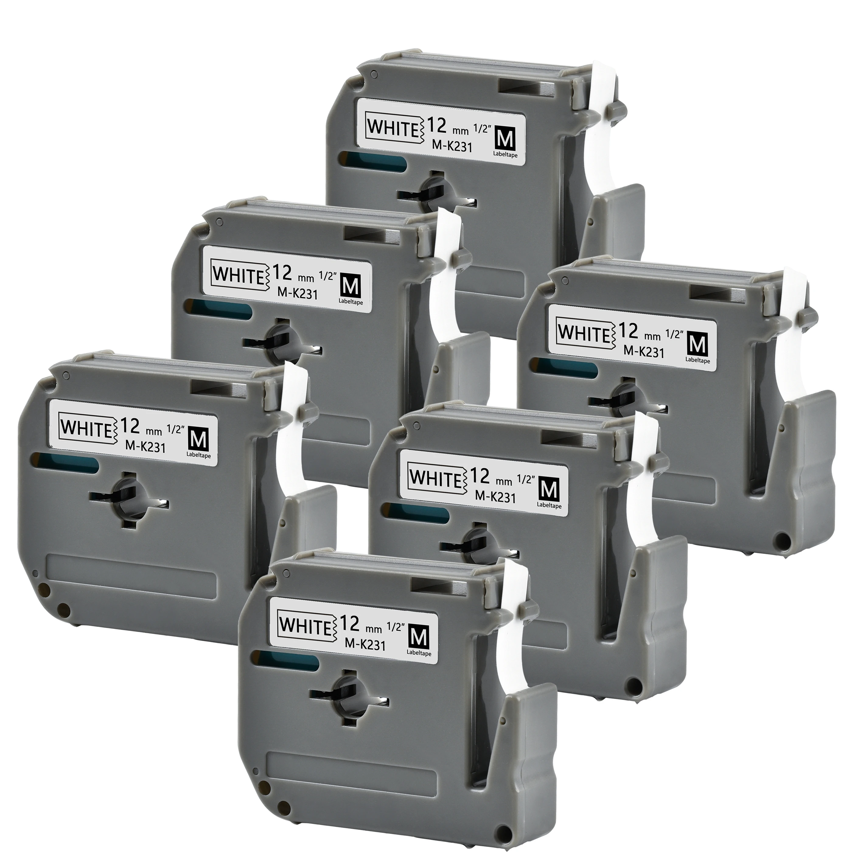 6 Pack Labelife M-K231 Compatible Label Tape Replacement for Brother PTouch M Tape M231 MK231 M-231 M-K231S 12mm 0.47 Inch, for Brother PTouch PT-M95 ...