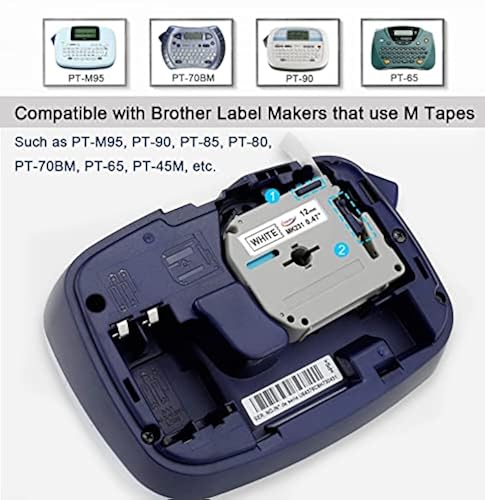Fimax Compatible Label Tape Replacement for Brother P Touch M Tape M231 MK231 MK-231 12mm 0.47 Inch to use with Brother P Touch PT-M95, PT-90, PT-70, PT-65, PT-85, Black on White, 26.2 Feet, 3-Pack | ...