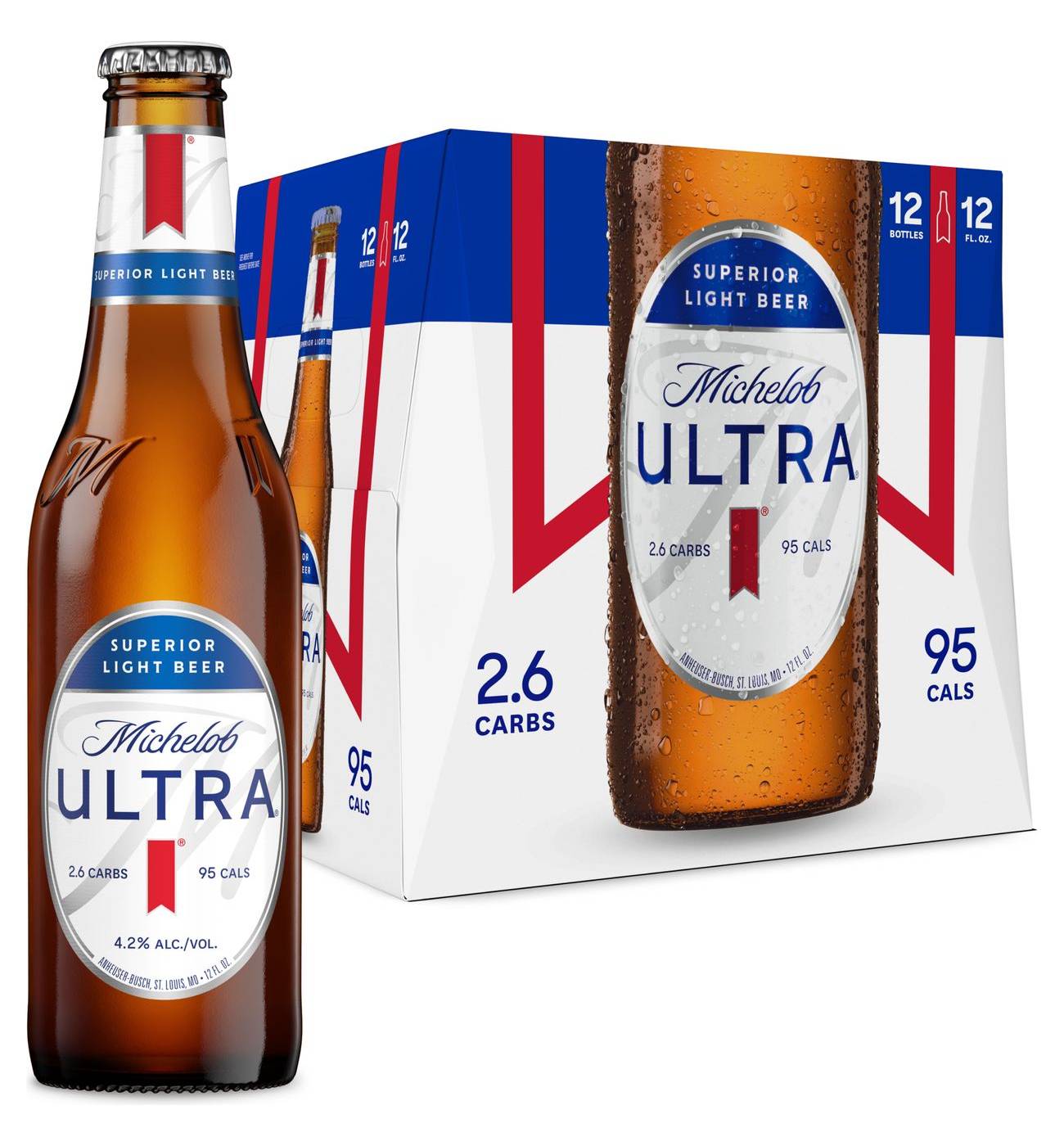 Can we see some ID? - Michelob ULTRA Containing only 95 calories and 2.6 carbs, Michelob ULTRA is a light lager brewed with the perfect balance of Herkules hops and wholesome grains, producing a light citrus aroma and a crisp, refreshing finish. Alcohol % 4.2 By Volume Calories 95 Per 12 Fl. Oz. Carbs 2.6 Per 12 Fl. Oz. Fat 0 Per 12 Fl. Oz. Find Near You View All Beers