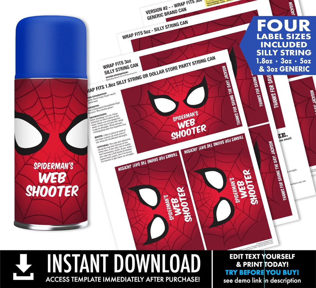 Spiderman Web Shooter Silly String Labels Printable Template - Superhero Birthday Party Game Activity Favor - Spider Web - INSTANT DOWNLOAD